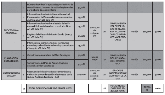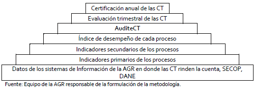 Pirámide de indicadores para la construcción del índice AuditeCT para la evaluación parcial trimestral y la certificación anual de las contralorías territoriales