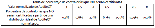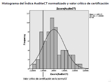 Por esa razón, al Índice AuditeCT se le puede aplicar el proceso de normalización Z con el fin de aplicar las propiedades de la Normal (0,1).