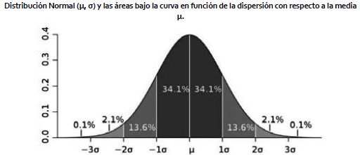 Nota: Los valores de la distribución se obtienen de Microsoft Excel a partir de la función Z la cual se encuentra en el inventario de funciones del programa; antes del desarrollo de la computación moderna se usaban tablas para estimar el área bajo la curva. Los valores debajo de la curva Normal se calculan mediante el uso de métodos numéricos en donde se hace una aproximación por medio de sumas de Riemman porque la integral correspondiente no se puede estimar de manera analítica.
