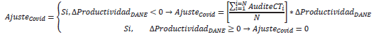 Fórmula condicional del Ajuste por Covid en función de la productividad total de los factores estimada por el DANE.