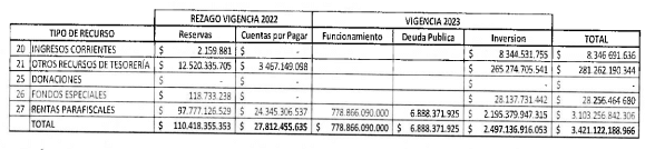 ARTÍCULO PRIMERO. Aprobar el Programa Anual de Caja del Instituto Colombiano de Bienestar Familiar para la vigencia 2023 con recursos propios, por la suma de TRES BILLONES CUATROCIENTOS VEINTIÚN MIL CIENTO VEINTIDÓS MILLONES CIENTO OCHENTA Y OCHO MIL NOVECIENTOS SESENTA Y SEIS PESOS M/CTE ($3.421.122.188.966), valor que corresponde a la meta global de pagos autorizada por el Consejo Superior de Política Fiscal CONFIS para la mencionada vigencia, para atender los compromisos y obligaciones de las reservas presupuéstales y cuentas por pagar constituidas con cargo al presupuesto de la vigencia 2022 y los que se deriven de la ejecución del presupuesto de la vigencia fiscal del 2023, la cual se distribuye de la siguiente manera: