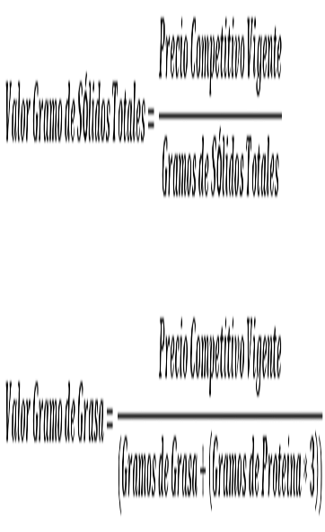 Para cada una de las regiones definidas y con base en la información mensual reportada por los agentes económicos a la Unidad de Seguimiento de Precios de Leche del Ministerio de Agricultura y Desarrollo Rural, en adelante USP-MADR, se toma el periodo enero 2008 a noviembre 2011, se hallan los promedios en términos de fracciones de décima para Proteína, Grasa y Sólidos Totales, estos se ponderan utilizando como variable el volumen de leche mensual acopiado, este resultado se multiplica por 10 para llevarlo de fracciones de décima a unidades y luego se multiplica por la densidad de la leche que opera como constante en el ejercicio. Para hallar la cantidad de gramos de cada ítem; finalmente se toma el precio competitivo vigente a diciembre 2011 ($797) y se divide por la cantidad de gramos hallada. Para el ítem Proteína se toma el valor calculado del gramo de grasa y se multiplica por 3 dada la relación 3 a 1 que está establecida al interior del CNL para estas variables.