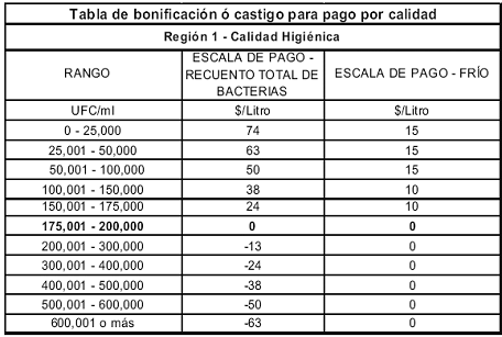 Los valores de bonificación y/o descuento de las tablas de calidad higiénica serán ajustados de acuerdo al porcentaje de variación del valor del gramo. La bonificación obligatoria por frío, se mantendrá constante hasta que el Ministerio de Agricultura y Desarrollo Rural considere necesario ajustarla.