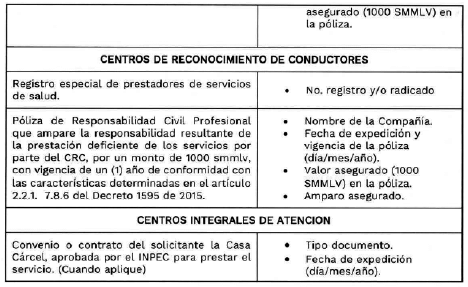 f) Contar con póliza que ampare la responsabilidad civil profesional: Que ampare la responsabilidad civil profesional resultante de la prestación deficiente de los servicios por parte del Centro de Diagnóstico Automotor, por un monto de mil salarios mínimos mensuales legales vigentes (1.000 SMMLV) con vigencia de un (1) año, de conformidad con las características determinadas en el artículo 2.2.1.7.8.6 del Decreto número 1595 de 2015 o aquella norma que la modifique, adicione o sustituya.