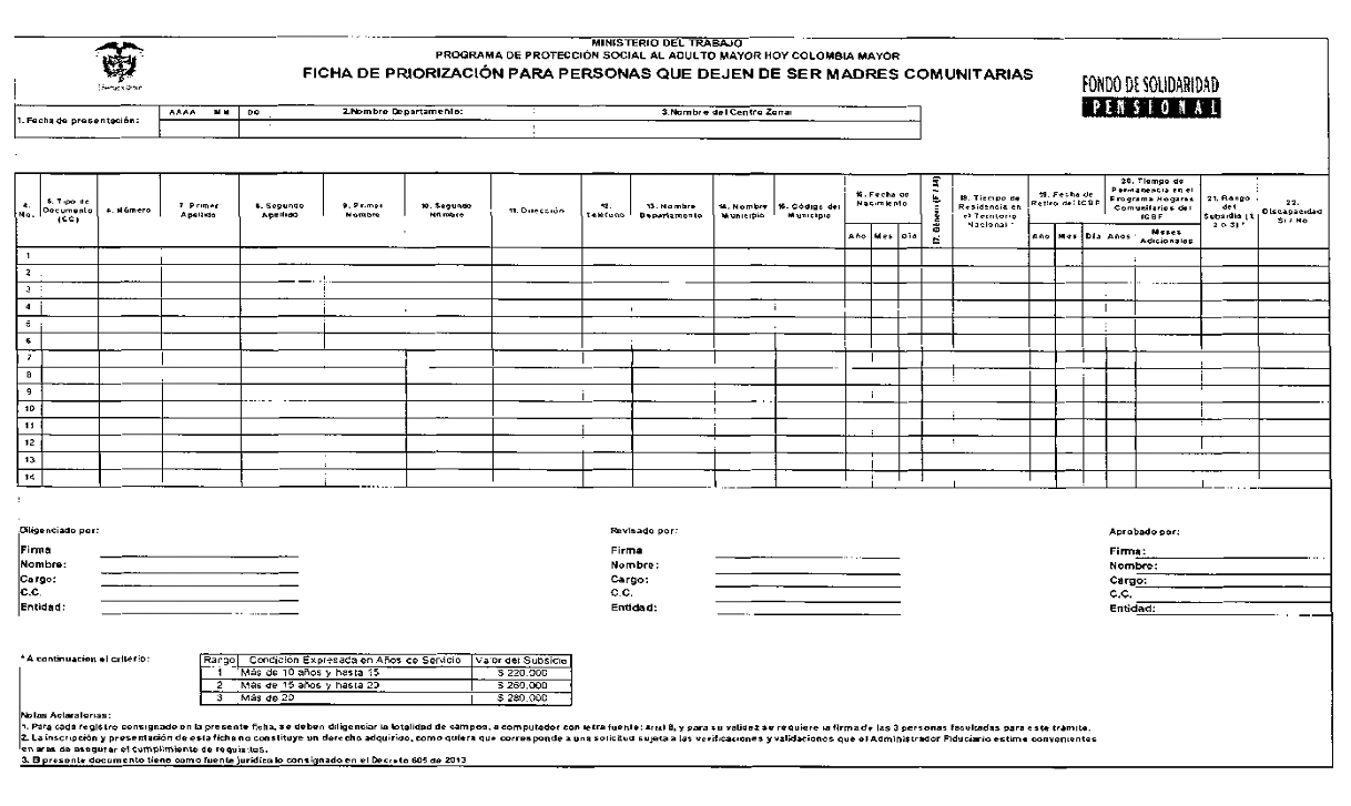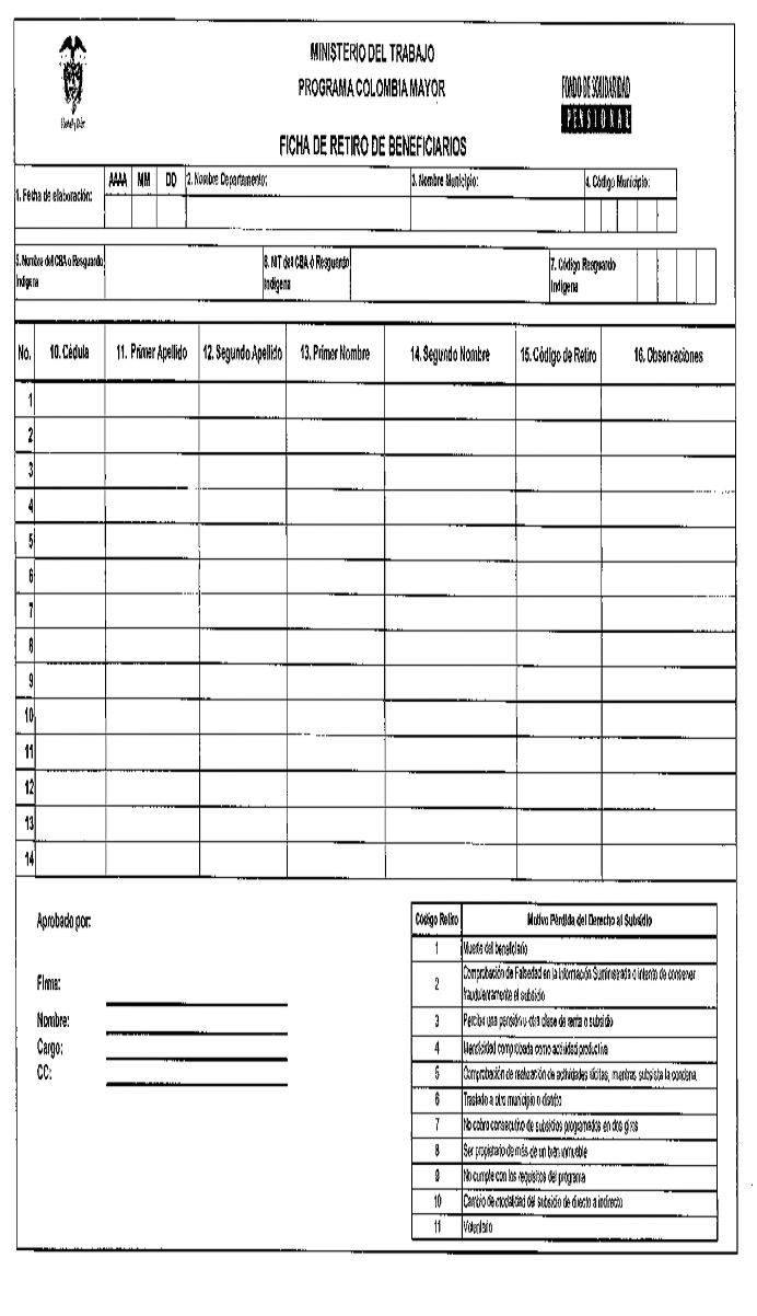La presente con destino al Administrador Fiduciario de los recursos del Fondo de Solidaridad Pensional, con el objeto de dar cumplimiento a la normatividad que regula el Programa de Protección Social al Adulto Mayor hoy Colombia Mayor.