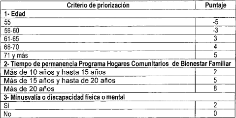 TABLA CRITERIOS DE PRIORIZACIÓN DE PERSONAS QUE DEJEN DE SER MADRES COMUNITARIAS (NO PENSIÓN NI BEPS)