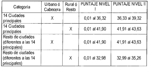 De acuerdo con la Metodología Versión III del Sisbén se han determinado los siguientes puntos de corte: