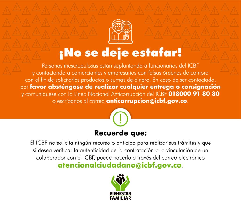 • Correo Atención al Ciudadano: atencionalciudadano@icbf.gov.co