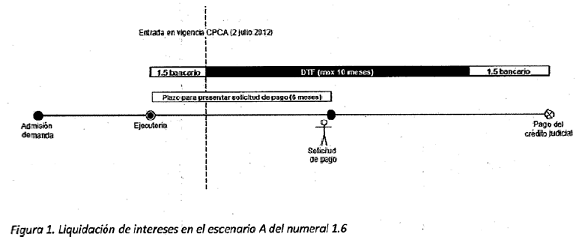 1.7. La regla definida por la Sala de Consulta del Consejo de Estado para la aplicación de tasas de interés en pagos de sentencias y conciliaciones fue la siguiente: “La tasa de mora aplicable para créditos judicialmente reconocidos en sentencias condenatorias y conciliaciones debidamente aprobadas por la jurisdicción es la vigente al momento en que se incurre en mora en el pago de las obligaciones dinerarias derivadas de aquellas. En consecuencia, cuando una entidad estatal deba dar cumplimiento a una sentencia proferida o conciliación aprobada con posterioridad a la entrada en vigencia de la Ley 1437 de 2011 (julio 2 de 2012), pero cuya demanda fue interpuesta con anterioridad a esta, debe liquidar el pago con intereses moratorias de acuerdo con las disposiciones de la Ley 1437 de 2011. Igualmente, si el incumplimiento de la referida obligación se inicia antes del tránsito de legislación y se prolonga durante la vigencia de la nueva ley, la pena, esto es, el pago de intereses moratorios, deberá imponerse y liquidarse por separado lo correspondiente a una y otra ley”[1].