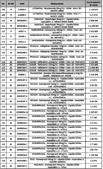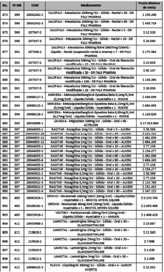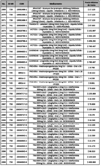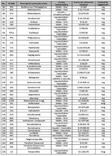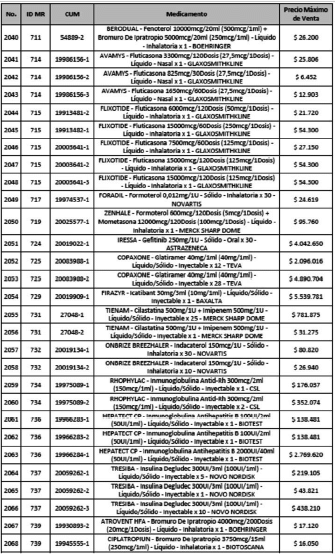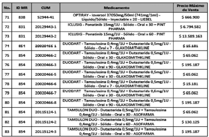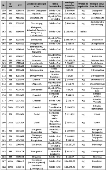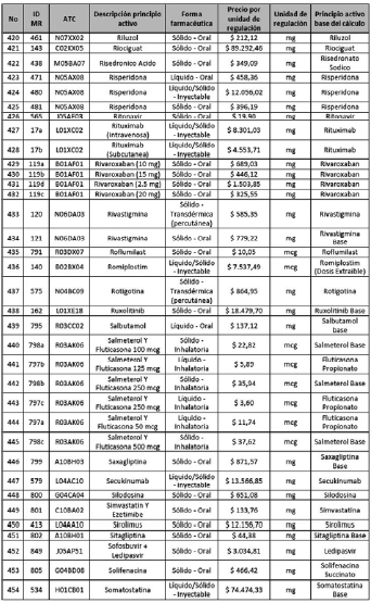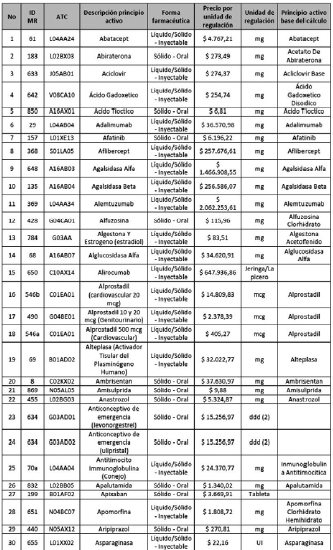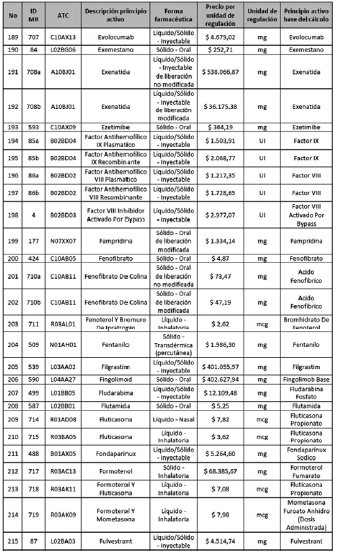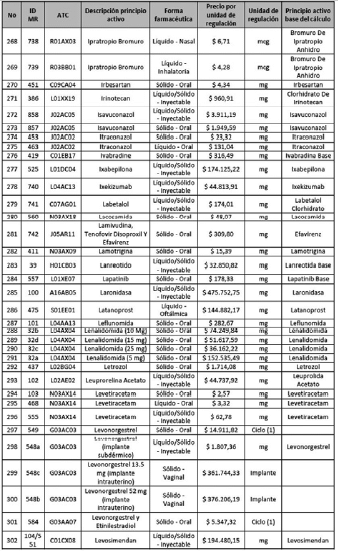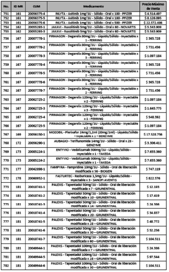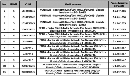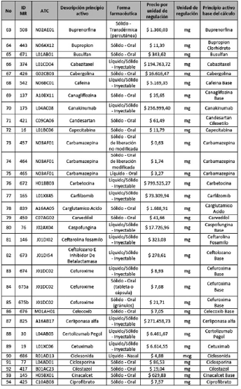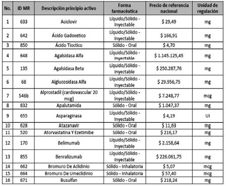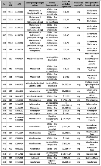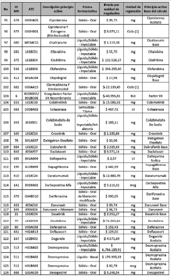 Por la cual se establece el listado de los medicamentos sujetos al régimen de control directo de precios, se fija el precio máximo de venta y el precio por unidad de regulación de Medicamentos Vitales No Disponibles y se dictan otras disposiciones.
