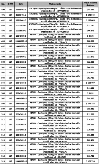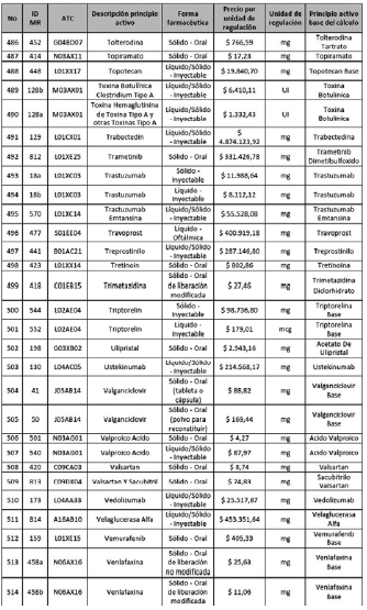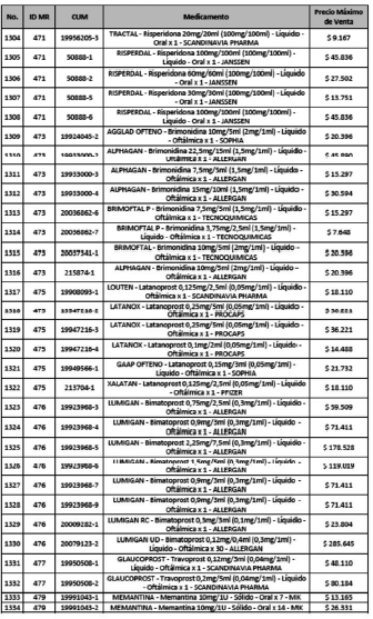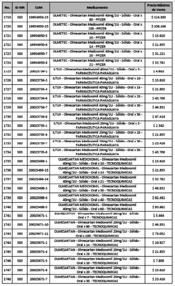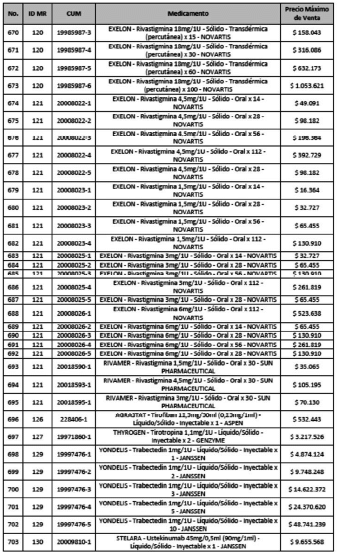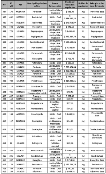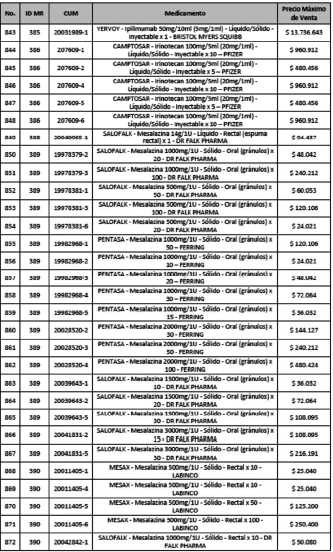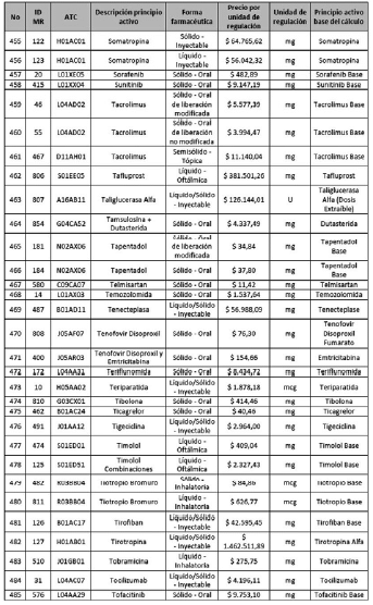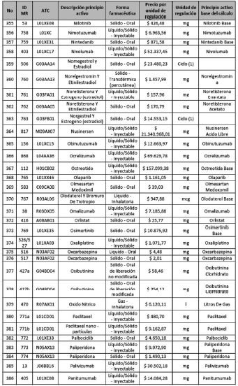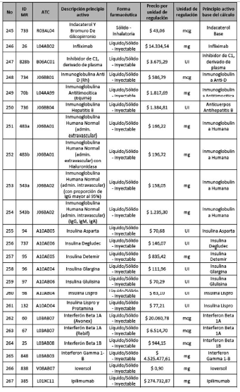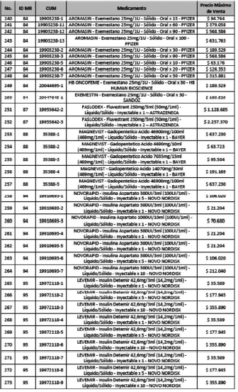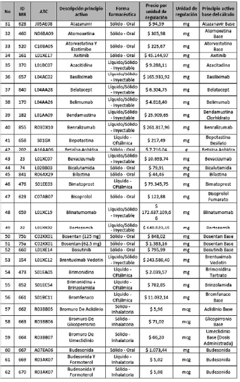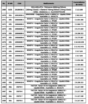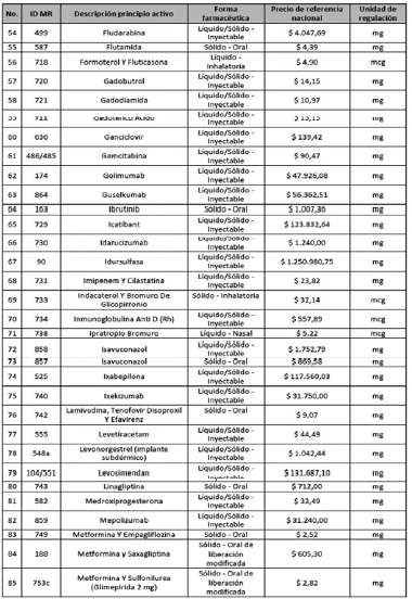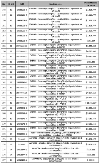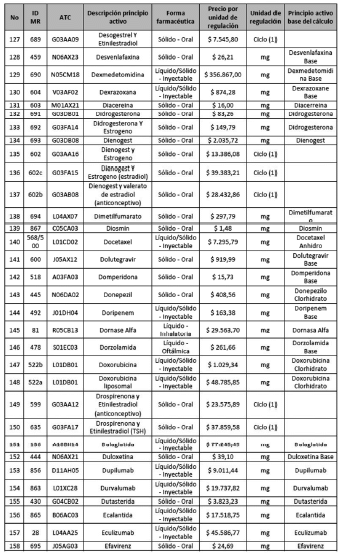 Por la cual se establece el listado de los medicamentos sujetos al régimen de control directo de precios, se fija el precio máximo de venta y el precio por unidad de regulación de Medicamentos Vitales No Disponibles y se dictan otras disposiciones.