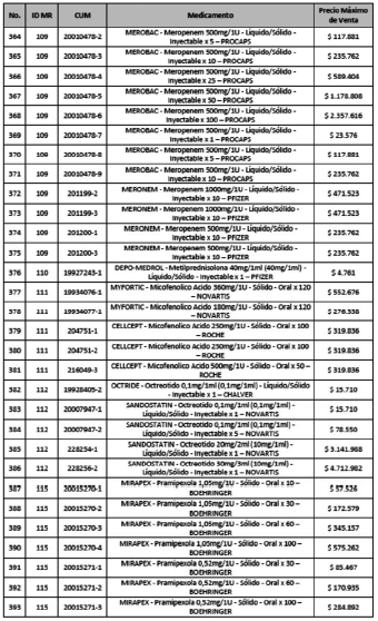 Que conforme con lo anteriormente señalado, serán modificados los Precios Máximos de Venta establecidos para el mercado relevante ID 98 correspondiente al principio activo insulina lispro con forma farmacéutica líquido-sólido inyectable para los CUM 224030-1, 224030-2, 224030-3, 224030-4, 224030-4, 224030-5 y 224030-6, teniendo en cuenta que la presentación comercial de los mismos incluida en la Circular 10 de 2020 modificada parcialmente por la Circular 11 de 2020, es diferente a la reportada en el registro sanitario expedido por el INVIMA. De igual manera, será modificado el Precio Máximo de Venta del mercado relevante ID 543a correspondiente al principio activo inmunoglobulina humana normal (admin. intravascular) (con proporción de IgG mayor al 95%) incluyendo al cálculo del PRI el precio del medicamento KIOVIG - Inmunoglobulina Humana Normal del laboratorio BAXALTA puesto que su registro sanitario fue modificado incluyendo el código ATC J06BA02.