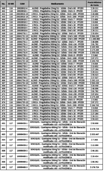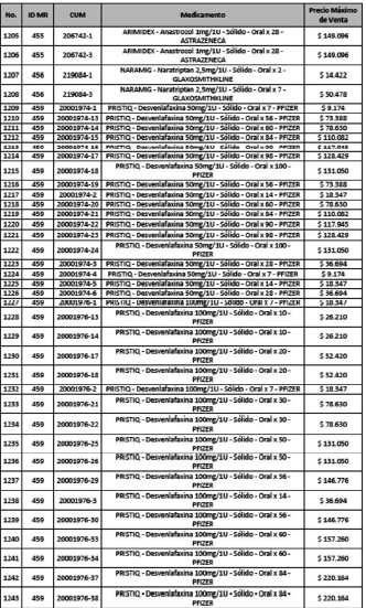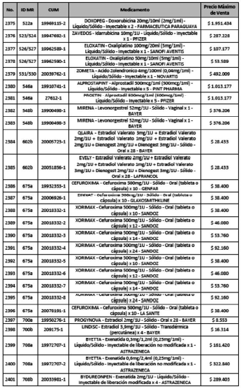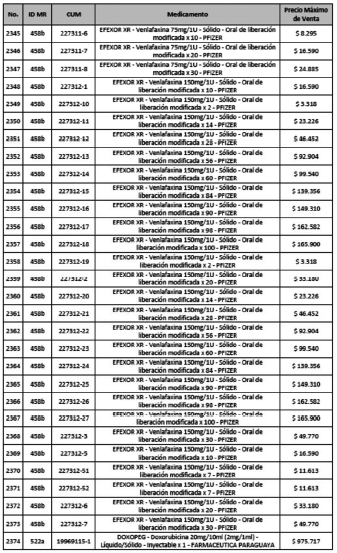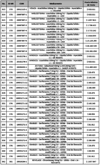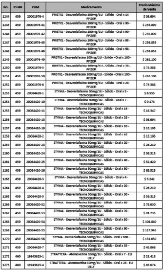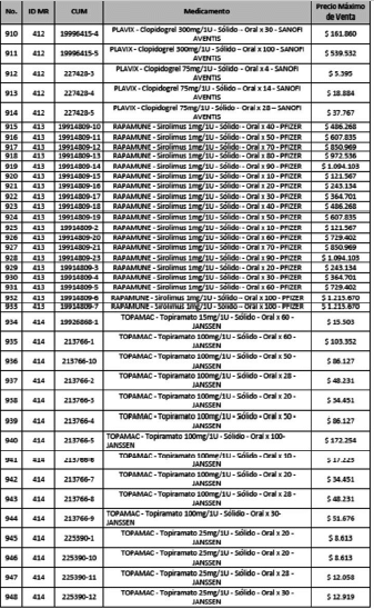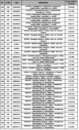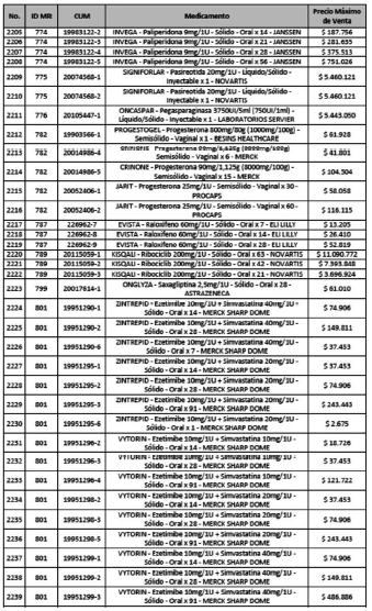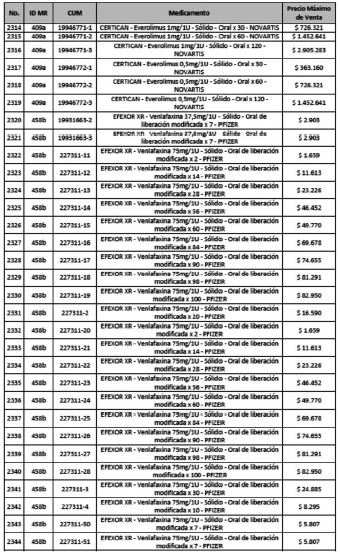 ARTÍCULO 2. PRECIO MÁXIMO DE VENTA DE MEDICAMENTOS ANTERIORMENTE REGULADOS. <Circular derogada por la Circular 13 de 2022. Surte efecto a partir del 26 de septiembre de 2022> Fíjese el Precio Máximo de Venta de los medicamentos regulados en anteriores circulares por esta Comisión, así: