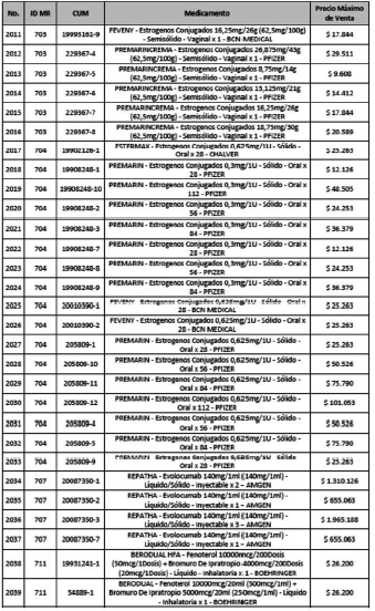Que la Comisión Nacional de Precios de Medicamentos y Dispositivos Médicos (CNPMDM) evidenció que los mercados relevantes ID 98 correspondiente al principio activo insulina lispro con forma farmacéutica líquido-sólido inyectable para el CUM 224030-7; e ID 701 correspondiente al principio activo estriol con forma farmacéutica semisólido-vaginal para los CUM 19997491-5 y 19997491-6, y serán eliminados por pertenecer a muestras médicas según lo reportado en el registro sanitario expedido por el INVIMA.