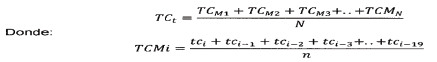 TCMi: Tasa promedio de los últimos 20 días para el día i.
