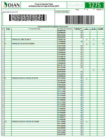 En cumplimiento de las disposiciones del Sistema Andino de las Franjas de Precios Agropecuarios (SAFP), según las Decisiones de la Comisión del Acuerdo de Cartagena, las Resoluciones emanadas de la Junta de la Comunidad Andina y demás noramitividad vigente, me permito informarles los Aranceles Totales para los productos mercadores, sus sustitutos, producto agroindustriales o subproductos señalados en dichas Normas.