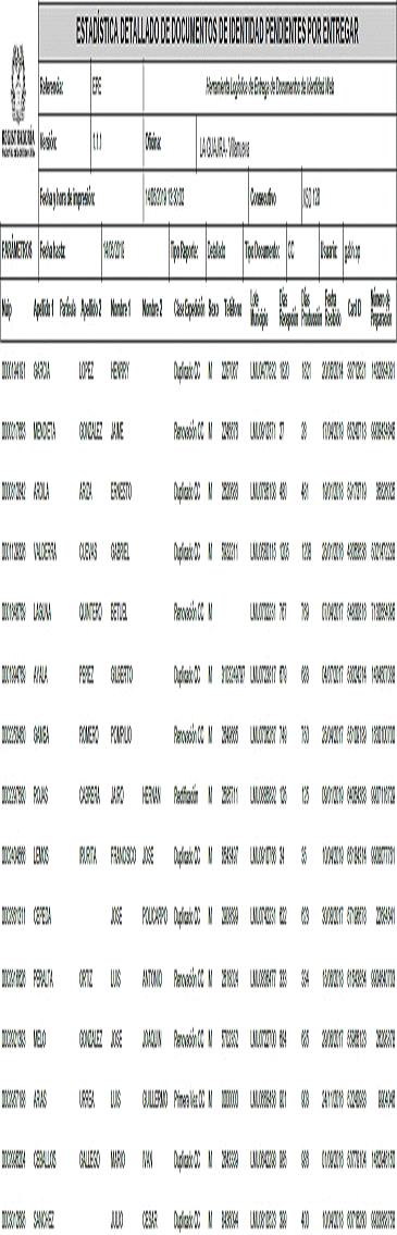 | 17 | Custodia y entrega de documentos de identidad | Se precisa directriz sobre, medidas la seguridad de custodia de documento, Términos para verificación de recepción de documentos y para reportar novedades. Se incluye lotes de CC policarbonato PLEX. |
