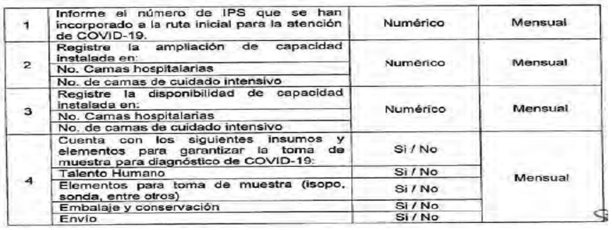 | PARA: | GOBERNACIONES, ALCALDIAS, SECRETARIAS DEPARTAMENTALES, DISTRITALES Y LOCALES DE SALUD, GERENTES DE INSTITUCIONES PRESTADORAS DE SERVICIOS DE SALUD - IPS ASIGNADAS PARA LA ATENCIÓN DE COVID-19, ENTIDADES ADMINISTRADORAS DE PLANES DE BENEFICIOS - EAPB Y DEMAS ENTIDADES DEL SISTEMA GENERAL DE SEGURIDAD SOCIAL EN SALUD RELACIONADAS CON LA PRESTACIÓN DE SERVICIOS DE SALUD. |