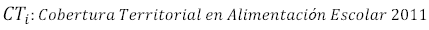 ii) Estimar los cupos de las entidades territoriales beneficiarias que se encuentren por debajo de la media nacional estimada para 2011, necesarios para alcanzarla. Para esto, se realiza una sumatoria de la matrícula de cada jornada escolar de 2011 multiplicada por la diferencia entre la cobertura nacional y la cobertura territorial de la misma vigencia.