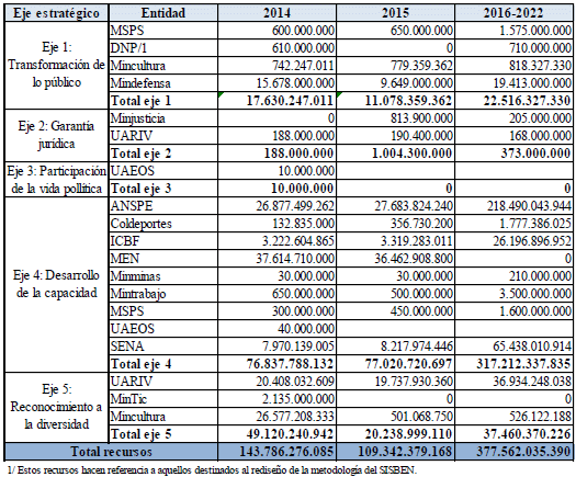 48. Aunque el periodo de la Política Pública Nacional de Discapacidad e Inclusión Social abarca el periodo 2013 a 2022, en la matriz de financiamiento se presenta la información hasta el año 2015 en congruencia con el Marco de Gasto de Mediano Plazo vigente - MGMP. Dicha información es susceptible de incrementos progresivos conforme al artículo 5, numeral 10 de la Ley Estatutaria 1618 de 2013.