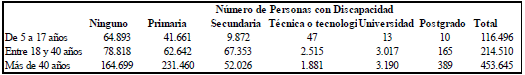 Tabla A3. Personas con Discapacidad por rangos de edad y nivel educativo alcanzado