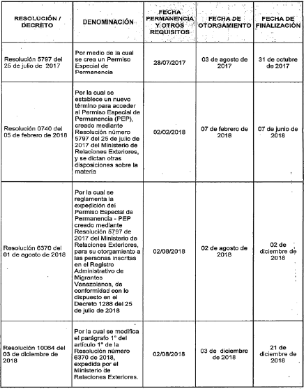 Que el Ministerio de Relaciones Exteriores, mediante la Resolución 5797 del 25 de julio de 2017, creó el Permiso Especial de Permanencia (PEP) como un mecanismo de facilitación migratoria para los nacionales venezolanos, que permitiera preservar el orden interno y social, evitar la explotación laboral de estos extranjeros y velar por su permanencia en condiciones dignas en el país.