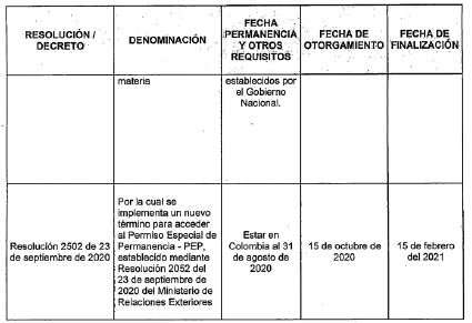 PARÁGRAFO 2o. Los ciudadanos venezolanos que en virtud de la Resolución 2052 <sic, 2502> del 23 de septiembre de 2020 expedida por el Ministerio de Relaciones Exteriores, y de la Resolución 2359 del 29 de septiembre de 2020 expedida por la Unidad Administrativa Especial Migración Colombia, cumplen con los requisitos para la expedición del Permiso Especial de Permanencia y no pudieron obtenerlo dentro del plazo establecido en dichas resoluciones, podrán hacerlo de conformidad con lo establecido mediante acto administrativo por la Unidad Administrativa Especial Migración Colombia.