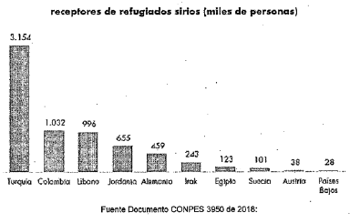 Que de acuerdo con las consideraciones incluidas en el Documento CONPES 3950 del 23 de noviembre de 2018 “Estrategia para la atención de la migración desde Venezuela”, si bien es cierto que el fenómeno que se presenta en Turquía difiere en aspectos esenciales al colombiano, se hizo referencia a él de modo ilustrativo para evidenciar que, en materia de cifras de personas migrantes, Colombia se sitúa en segundo lugar en cuanto a países receptores de migrantes, en los siguientes términos: