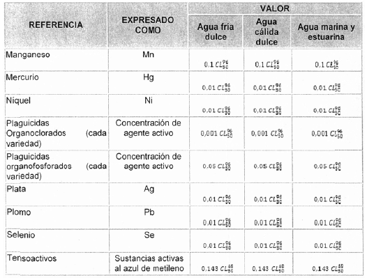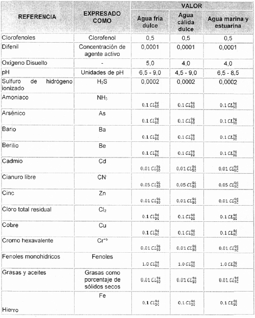 “Artículo 2.2.3.3.9.10. Transitorio. Criterios de calidad para preservación de flora y fauna. Los criterios de calidad admisibles para la destinación del recurso para preservación de flora y fauna, en aguas dulces, frías o cálidas y en aguas marinas o estuarinas son los siguientes: