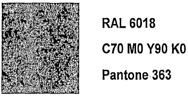 ARTÍCULO 2.6.1.6. COLOR. <Artículo adicionado por el artículo 1 del Decreto 191 de 2021. El nuevo texto es el siguiente:> El color definido para el fondo del logotipo.de parqueaderos preferenciales para vehículos eléctricos en Colombia es el verde, que en la carta de color RAL corresponde al número 6018, en la carta de Pantone al 363 y su equivalente en CMYK es C70 M0 Y90 K0, de la siguiente manera: