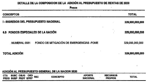 ADICIÓN AL PRESUPUESTO GENERAL DE LA NACIÓN 2020