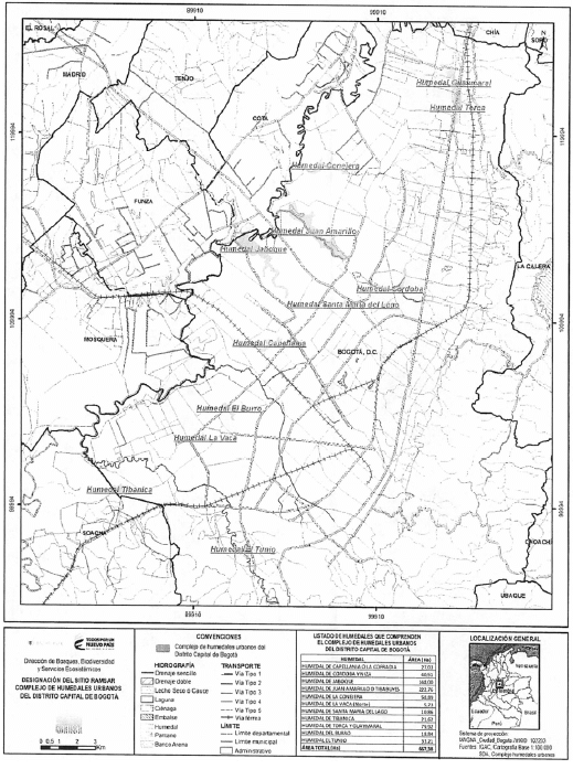 Que en cumplimiento de lo anterior, la Secretaría Distrital de Ambiente de Bogotá, D. C., en el área urbana y en comisión conjunta con la Corporación Autónoma Regional Cundinamarca -CAR, en las áreas urbanas con tramos rurales o de expansión urbana, aprobaron los respectivos Planes de Manejo Ambiental de los humedales, así: