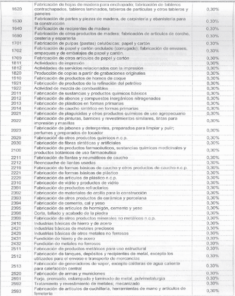 Para tal efecto, la autorretención de este impuesto se liquidará sobre cada pago o abono en cuenta realizado al contribuyente sujeto pasivo de este tributo, de acuerdo con las siguientes actividades económicas y a las siguientes tarifas: