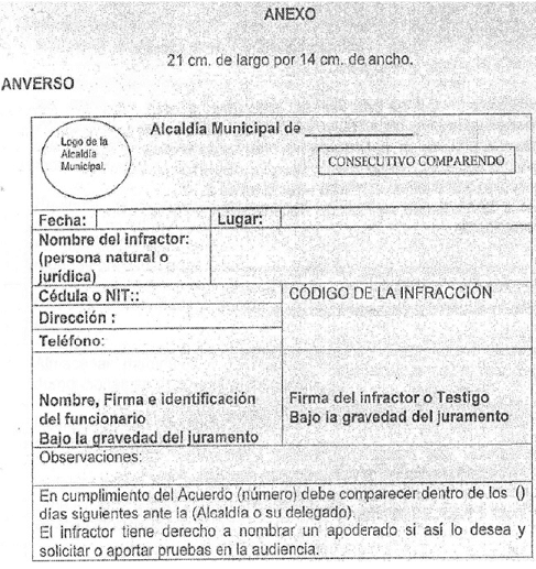 ARTÍCULO 12. Adiciónese a la Sección 1, <Título 5>, Capítulo 14, Parte 2, Libro 2, el siguiente anexo que contiene el formato del Comparendo Ambiental: