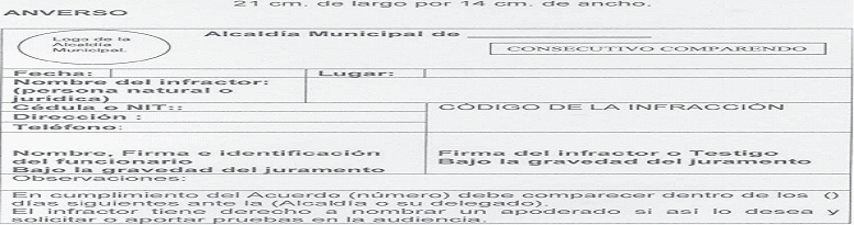 En el reverso, tanto del original como de las copias, irá impreso el contenido del artículo 2o del presente decreto con las sanciones correspondientes para cada infracción, según lo defina el respectivo Consejo mediante Acuerdo.