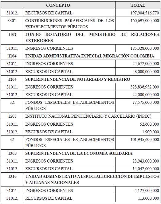 La Dirección General del Presupuesto Público Nacional del Ministerio de Hacienda y Crédito Público hará mediante resolución, las operaciones que en igual sentido se requieran durante el transcurso de la vigencia.