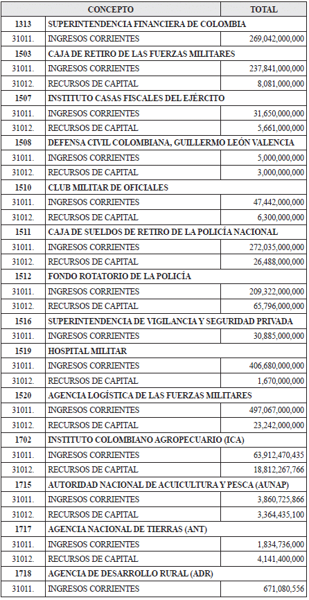 RENTAS DEL PRESUPUESTO GENERAL DE LA NACIÓN