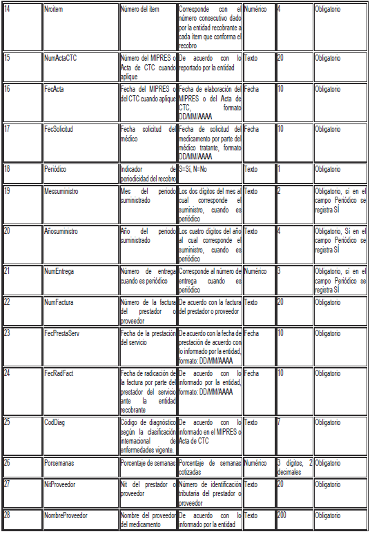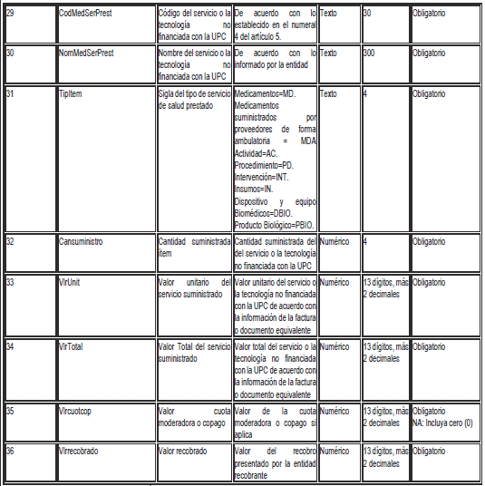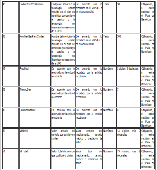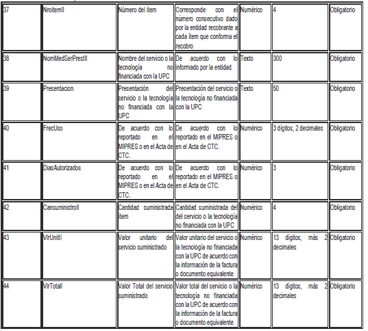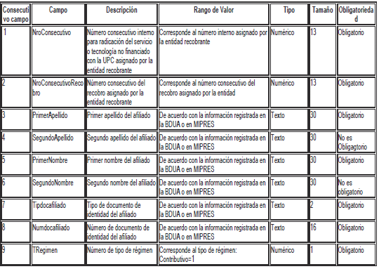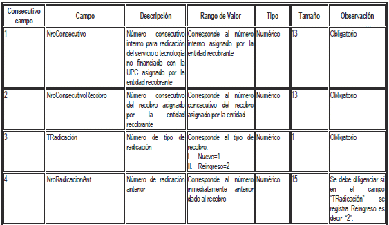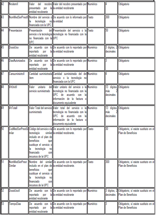 ARTÍCULO 5o. ESPECIFICACIONES PARA LA PRESENTACIÓN DE LA INFORMACIÓN. Los servicios y tecnologías en salud no financiados con la UPC que se presenten ante la ADRES por las entidades recobrantes deberán cumplir con las siguientes especificaciones: