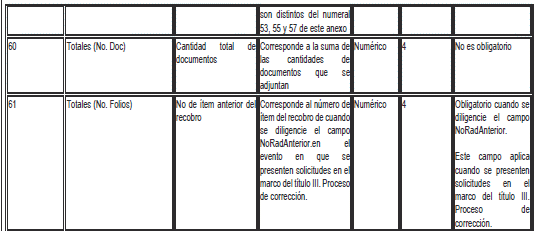 i. Cuando la entidad presente solicitudes derivadas del proceso de corrección, de manera obligatoria deberá allegar el número de radicación asignado en la primera presentación, así como el número del ítem. La anterior información se diligenciará en los campos 4 y 61 respectivamente.