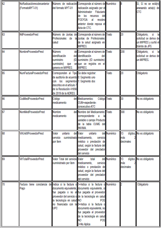c. El número de Juntas de Profesionales de la salud, si aplica, deberá diligenciarse en el campo No. 63 "NitProveedorPrest".