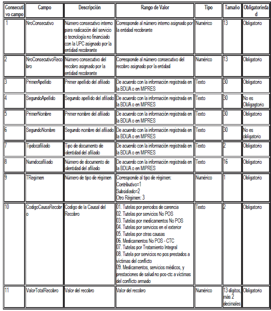 Las entidades recobrantes en el momento de diligenciar los archivos deberán tener en cuenta las siguientes precisiones: