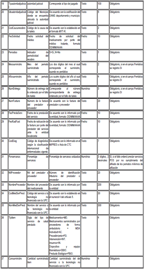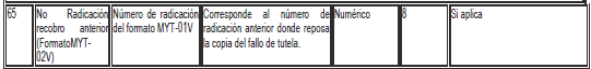 2. ANEXO TÉCNICO MYT 02: Corresponde al anexo técnico a través del cual se reportan los servicios y tecnologías no financiados por la UPC, que fueron ordenados por un fallo de tutela. El anexo técnico se compone de dos archivos txt que corresponden a: