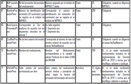 e. La entidad recobrante deberá especificar el tipo de auditoría de acuerdo con los segmentos descritos en el artículo 9 de la Resolución, así: i) para el segmento 1 deberá registrar el número cero (0) y, ii) para el segmento 2 deberá registrar el número uno (1). La información se debe ingresar en el campo No 65 "NumFacturaProveedorPrest".