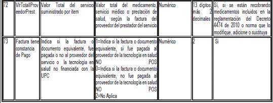 ii) Detalle: en el cual se deben diligenciar setenta y tres (73) campos con el detalle los servicios y tecnologías no financiados por la UPC.