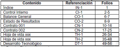 A manera de ejemplo, el índice de la carpeta quedará así: