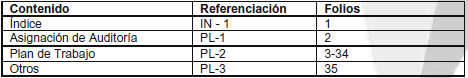 No se requiere referenciar el archivo permanente. Sin embargo, debe incluir un índice al principio del archivo, en el que se indique su contenido, el cual debe separarse por capítulos o temas como los enunciados a continuación a manera de ejemplo: leyes, decretos, ordenanzas, acuerdos, resoluciones, circulares, actas, antecedentes y actividades de la entidad, organigrama general del ente auditado, procedimientos, información de los directivos del ente auditado (debe ser actualizada para cada proceso auditor), otros (estadísticas, indicadores de gestión procesos en contra de la entidad).
