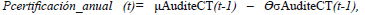 Que la certificación de las contralorías se realiza a partir de un puntaje crítico de certificación anual (Pcertificación_anual). Este puntaje será comparado con el índice de desempeño integral de cada contraloría.