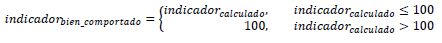 Una vez se hayan calculado los indicadores primarios, se hace necesario ajustar todos sus valores a una misma métrica y un mismo sentido, de manera que puedan ser agregados en indicadores secundarios. En este caso todos los indicadores deberán ser ajustados de manera que cumplan con dos condiciones 1) Rango: su rango (valores máximos y mínimos) se encuentre entre cero y cien [0, 100]; y 2) Sentido: la valoración del indicador mejora en la medida que el valor es mayor (100 es mejor que 0). Se dice que un indicador que cumpla con estas dos condiciones es un indicador bien comportado. Para realizar los ajustes necesarios, se le aplica a cada indicador calculado varias, una o ninguna trasformación, según sea el caso particular: