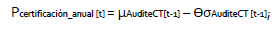 Así, al aplicar la transformación Z del Índice AuditeCT se llega a un valor crítico de certificación mediante la siguiente expresión: Pcertificación_anual=