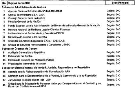 ARTÍCULO 10. CONTRALORÍA DELEGADA PARA EL SECTOR JUSTICIA. <Resolución derogada por el artículo 32 de la Resolución REJ-EJE-0088 de 2021> La Contraloría Delegada para el Sector Justicia, será competente para ejercer la vigilancia y el control fiscal a los siguientes sujetos de control:
